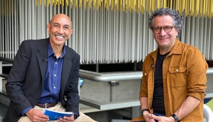 (Imagen: el director artístico Beto Arvelo en conversación con el periodista Ernesto Linzalata)